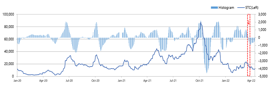 The number of dry cargo ships waiting in Shanghai Port is about 220, up 15% from a month ago. - Ships were transferred to nearby ports such as Rizhao and Qingdao, causing disruptions in the supply of ships in the Pacific routes. - On the other hand, despite the lifting of the blockade of Tangshan (April 11), the blockade of other major steel cities such as Zhangjiagang and Handan continued, and iron ore demand has not yet shown a clear recovery trend.